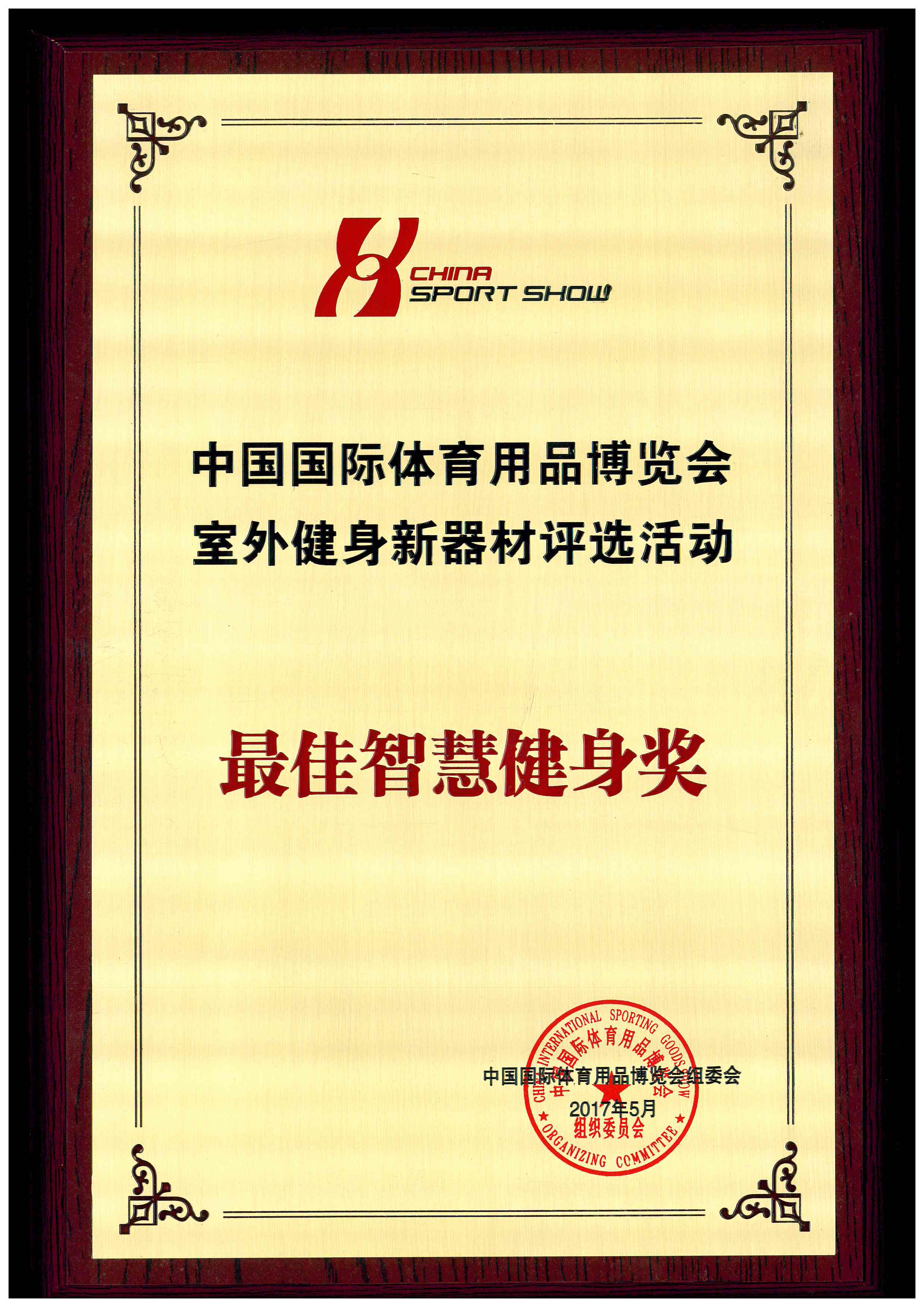 2017 | 2017體博會室外健身器材最佳智慧健身獎 | 中國國際體育用品博覽會組委會 |