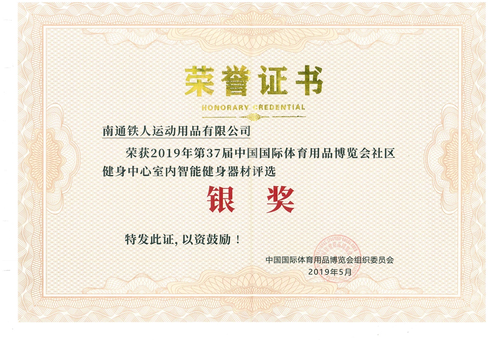 2019 | 2019體博會室內(nèi)智能健身器材銀獎 | 中國國際體育用品博覽會組委會 |