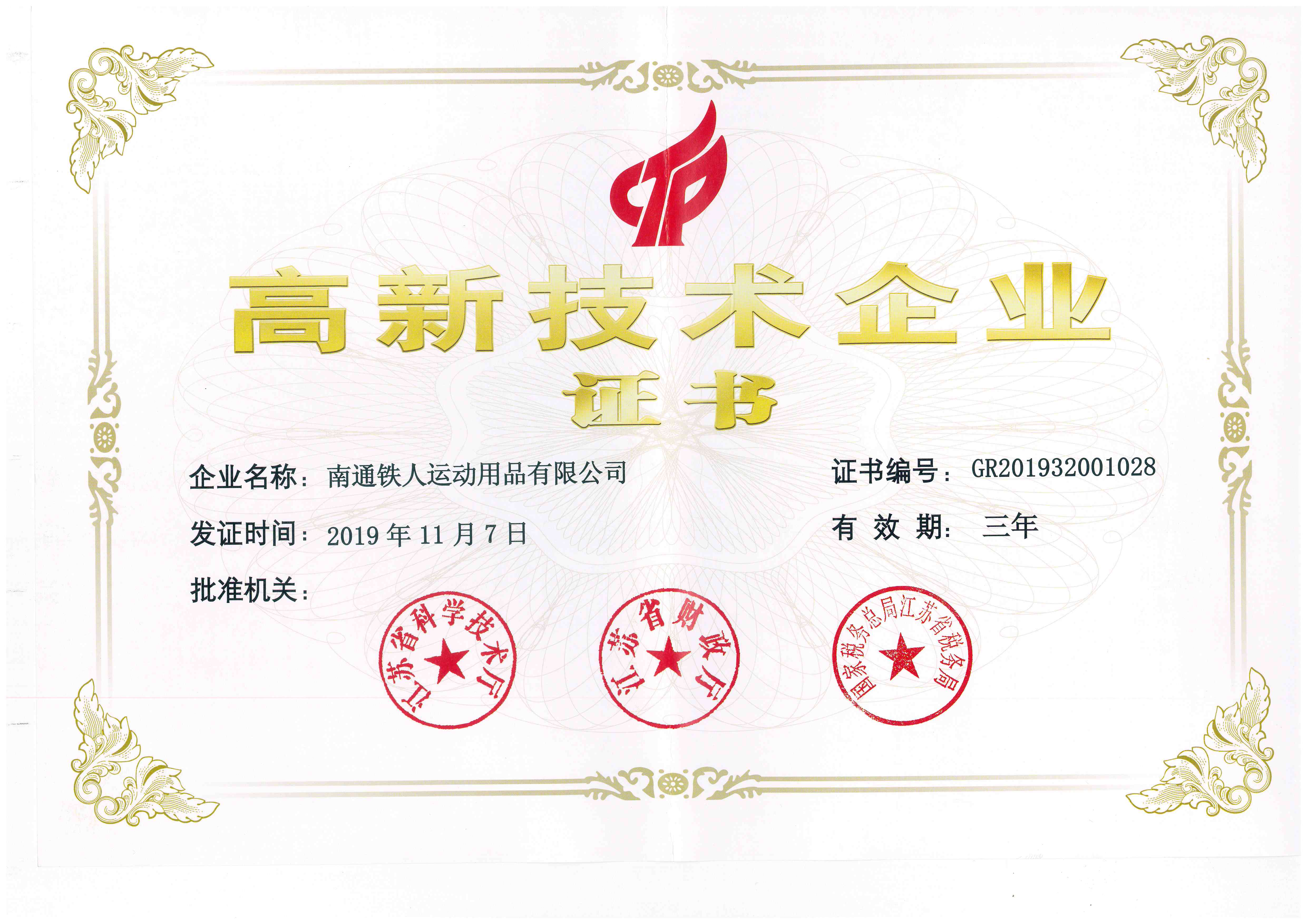 2019 | 江蘇省高新技術(shù)企業(yè) | 江蘇省科技廳、江蘇省財政廳 |