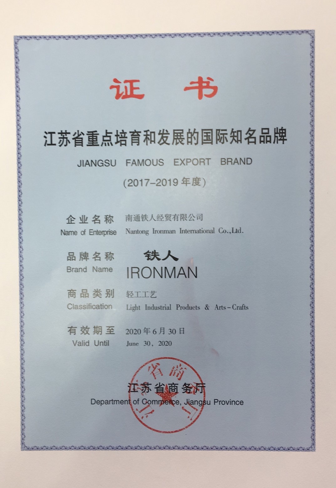 2018 | 江蘇省重點培育和發(fā)展的國際知名品牌 | 江蘇省商務(wù)廳 |